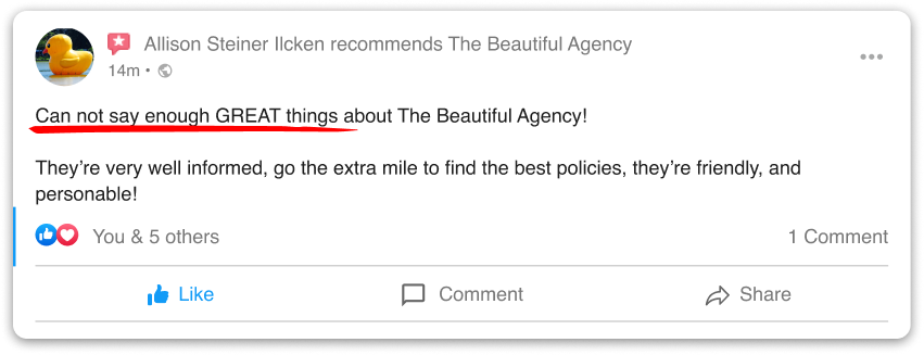 We provide a hassle-free, and easy-to-understand breakdown of your options, pricing breakdowns, coverage and deductible options, and then of course our recommendation based upon what we've seen others choose in the past to best fit their personal or families needs!